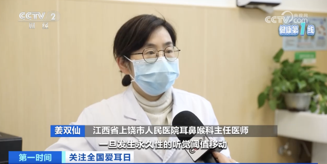 江西省上饶市人民医院耳鼻喉科主任医师 姜双仙:长期的噪音刺激会导致耳蜗的内毛细胞和外毛细胞的损伤,一旦发生永久性的听觉阈值移动,就会造成听力永久性的损伤。