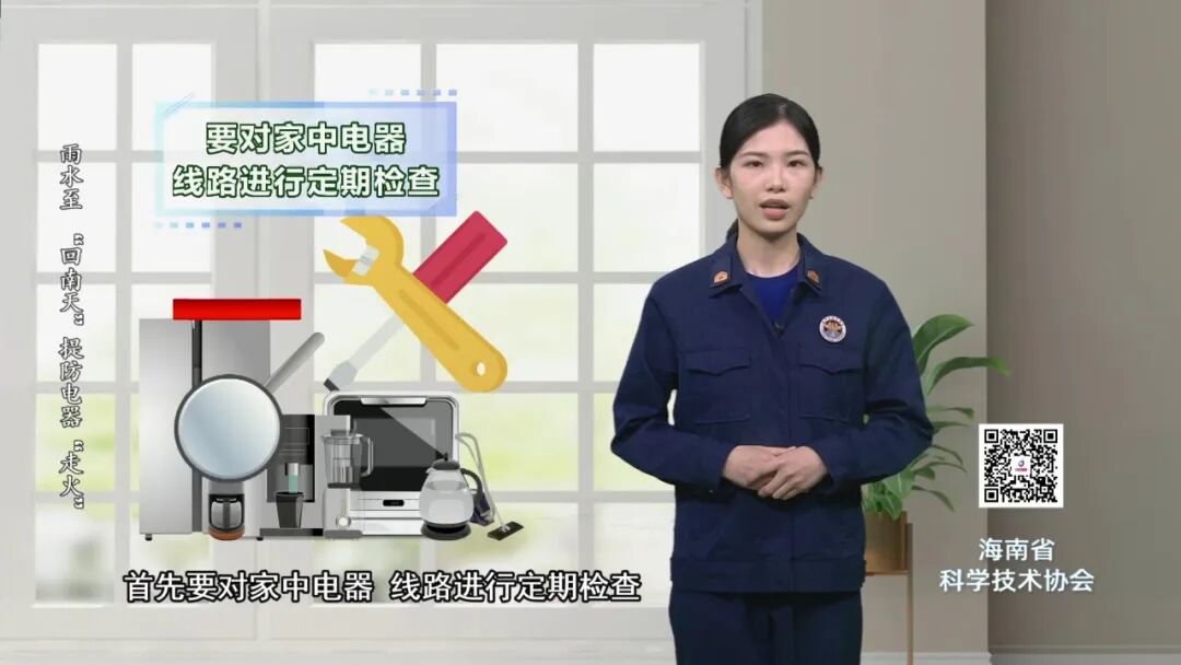 潮湿的环境中易诱发电气火灾事故,因此防潮的同时还需提防电器“走火”。首先,要对家中电器、线路进行定期检查,发现电器破损、电线老化的要及时维修更换。