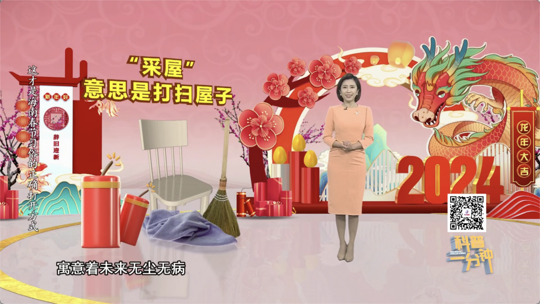 “采屋”(海南话)意思是打扫屋子,很多人会在除夕夜当天将板凳清洗完毕,寓意着未来无尘无病。守岁的习俗在中国有近两千年的历史,一般守到十二点的时候,海南的大朋友小朋友们会点燃鞭炮、烟花,庆祝新年到来。