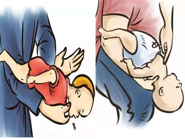 4、如果仍然不成功,需要转换体位,继续重复上面的动作,交替进行,直到异物排出或婴儿开始出现咳嗽、哭声,这就提示成功解除完全堵塞。