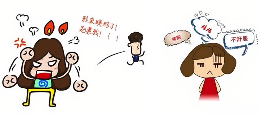在下丘脑、垂体、卵巢与子宫共同作用下,女性体内的激素如音乐旋律般高低起伏,交替影响着女性的生理和情绪。到了月经来潮那几天,很多女性会发现自己特别易怒,情绪不稳定,情不自禁地就会被“点燃”。生理上会出现怕冷、畏寒、四肢酸胀、下腹坠胀等症状,有些还会出现尿频尿急等膀胱刺激症状,以及恶心呕吐等胃肠道反应。