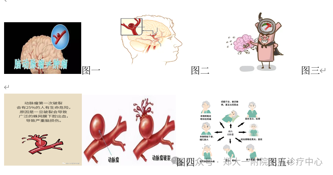 很多人听见颅内动脉瘤可能会想到是不是脑子里面长肿瘤了?那我可以很明确的告诉你颅内动脉瘤并非肿瘤(图一),它就像血管壁上吹出的气球(图二),被称为一颗不定时炸弹(图三),它可能随时会破裂,导致颅内动脉出血,尤其是蛛网膜下腔出血(图四) 有些动脉瘤无明显的症状,偶尔在体检中发现,还有部分患者会出现头痛、头晕、眼部疼痛、眼睑下垂、视力障碍、复视、癫痫等症状。(图五)