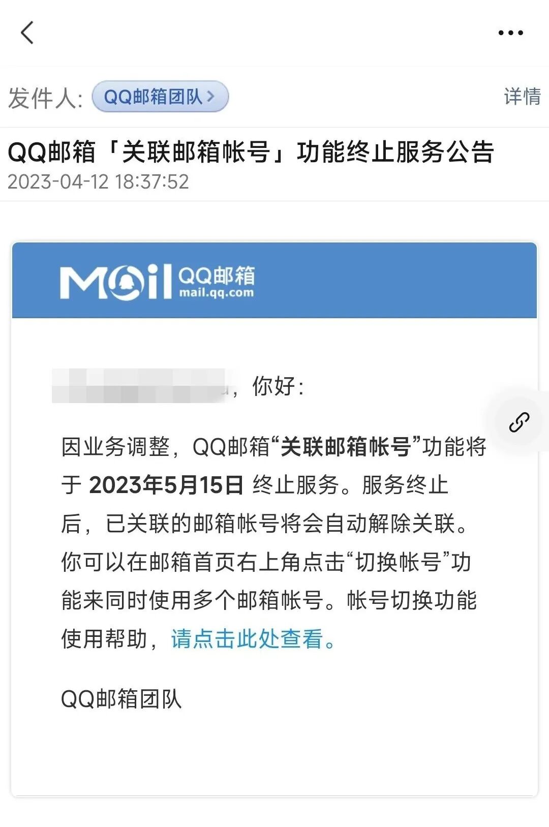 腾讯QQ邮箱宣布“关联邮箱帐号”功能2023年5月15日下线