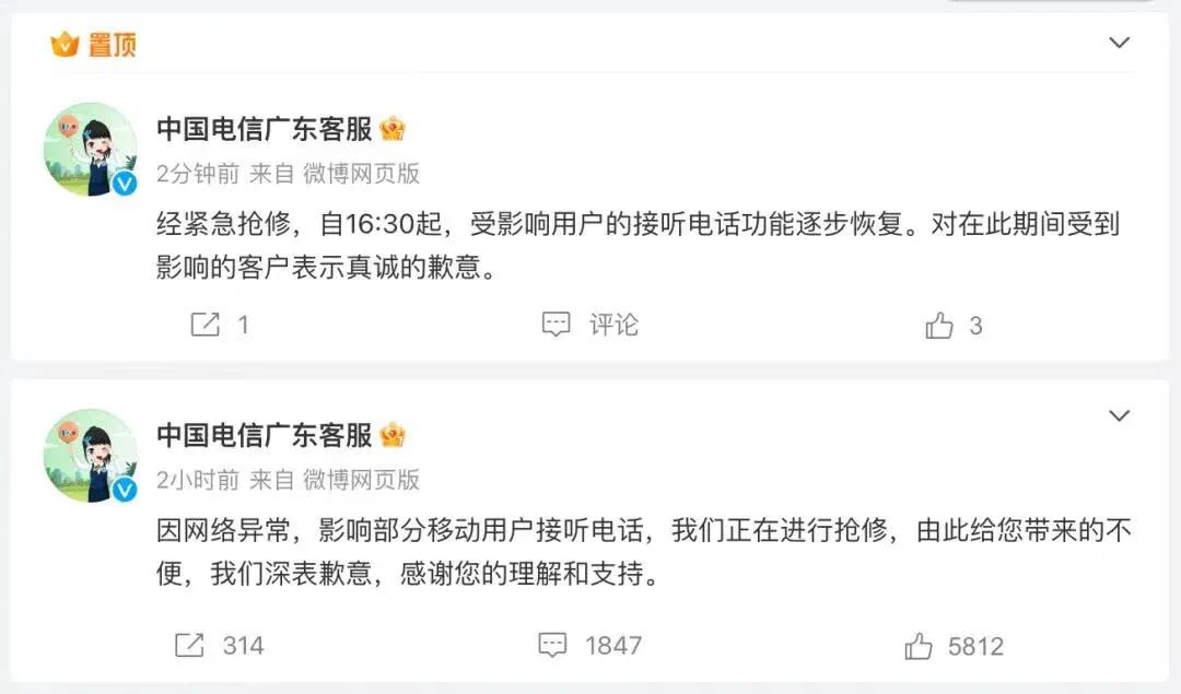 广东省内电信网络罕见断网5小时,原因尚未公布