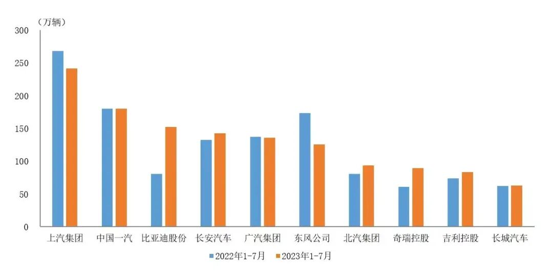8月24日,据中国汽车工业协会统计分析,2023年1-7月,汽车销量排名前十位的企业(集团)共销售1304.8万辆,占汽车销售总量的83.5%。