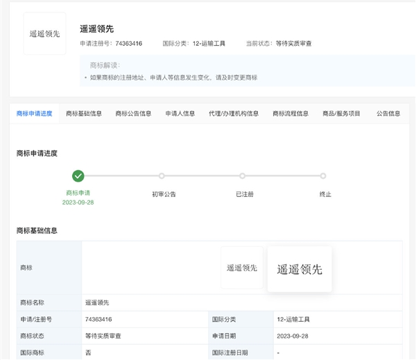 10月30日消息,目前华为已经将其注册成为商标,国际分类为运输工具、科学仪器,当前商标状态为等待实质审查。据悉,“遥遥领先”是余承东最早在2020年底的华为Mate 40系列发布会上脱口而出的形容词,余承东当时介绍这款划时代产品时,多次用“遥遥领先”来形容华为与同行的差距。据统计,他在整场发布会中共说了14次“遥遥领先”,之后这个词就火了起来,成为一个网络热词。如今,“遥遥领先”已经彻底成为了华为、Mate 60的代名词。