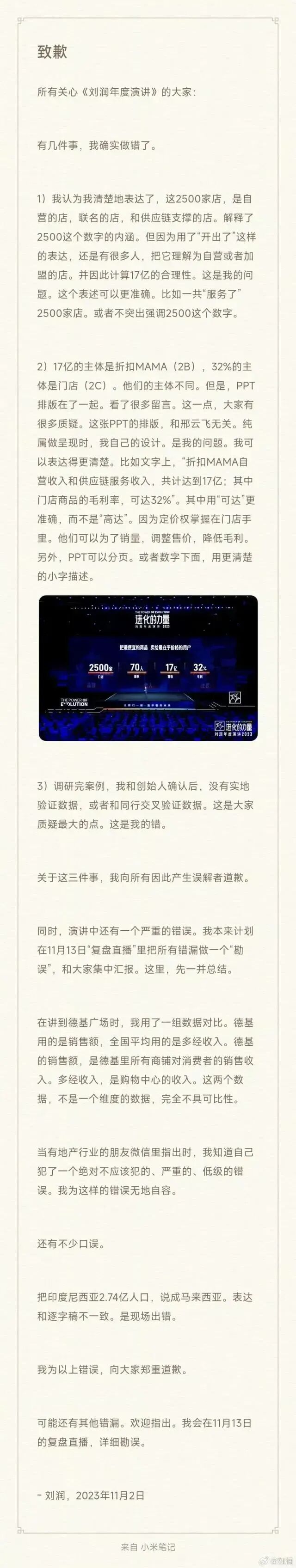 中国最贵企业咨询师刘润致歉:用“开出”这个词不准确,PPT排版也有问题