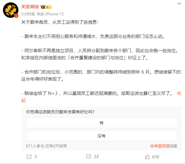 蔚来裁员赔偿N+3,阿尔卑斯不再是独立项目