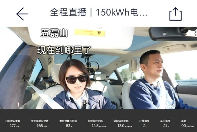 李斌直播挑战"1000公里续航",与何小鹏通电话:"强烈建议你也搞一场"