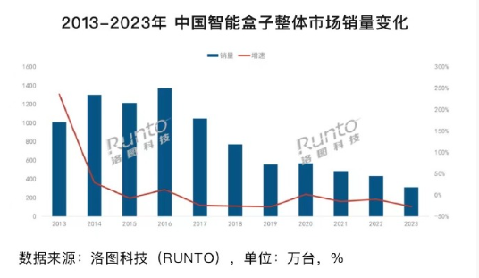 2023年中国电视盒子出货量下降27.5%,出货量惨淡