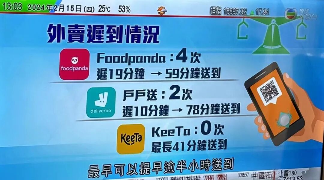 美团KeeTa在香港六大外卖平台中平台费最低、准时率最高