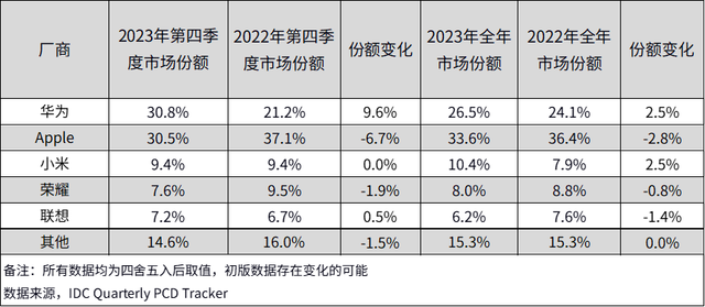近日,国际数据公司(IDC)发布了2023年第四季度中国平板电脑季度跟踪报告,数据显示,2023年第四季度,华为超过Apple成为中国平板电脑市场出货量第一,这是自2010年以来中国平板电脑季度出货量首次出现TOP1品牌的更替。