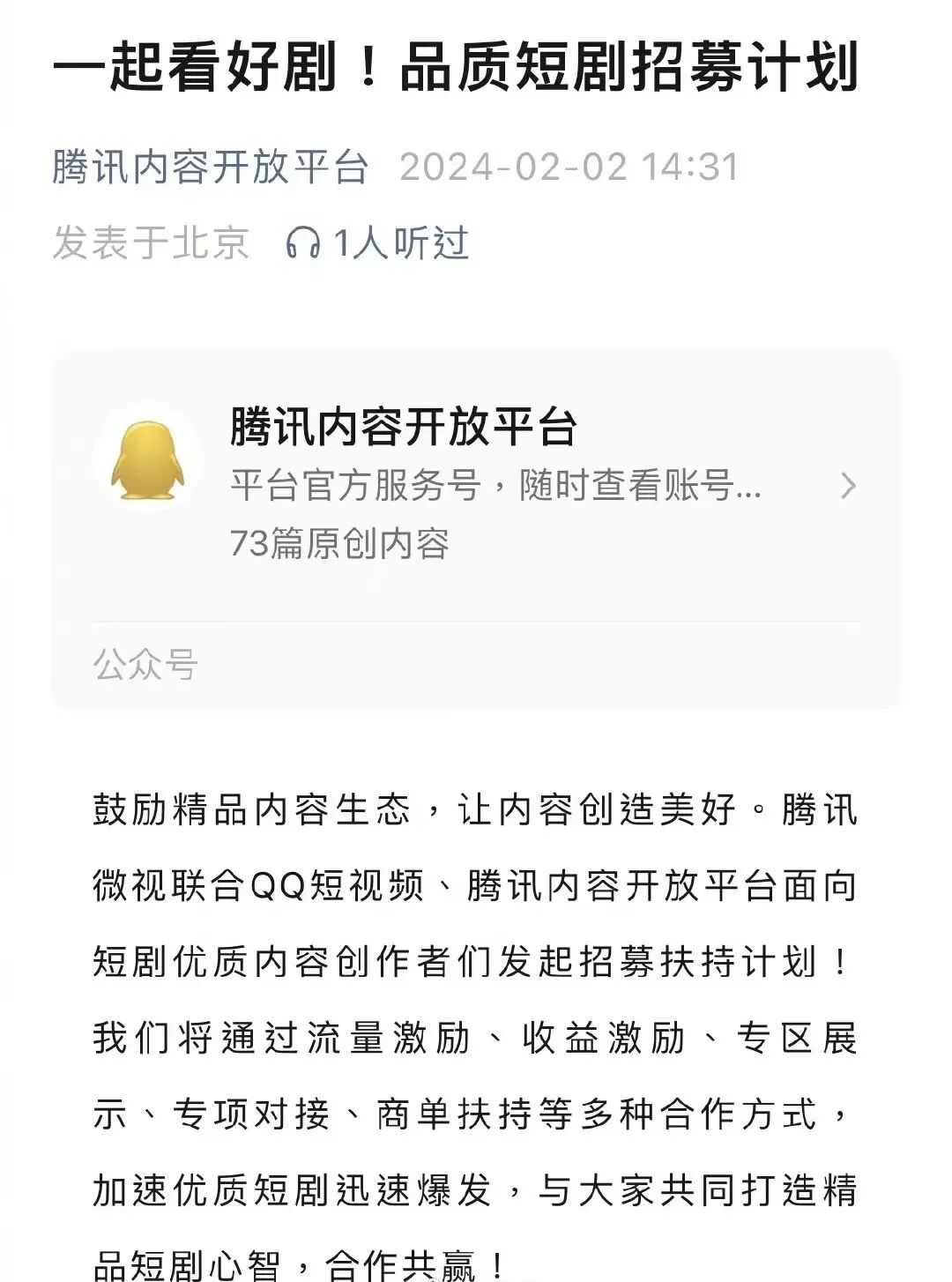 1.腾讯系加码短剧,阅文或将推出奇迹短剧平台