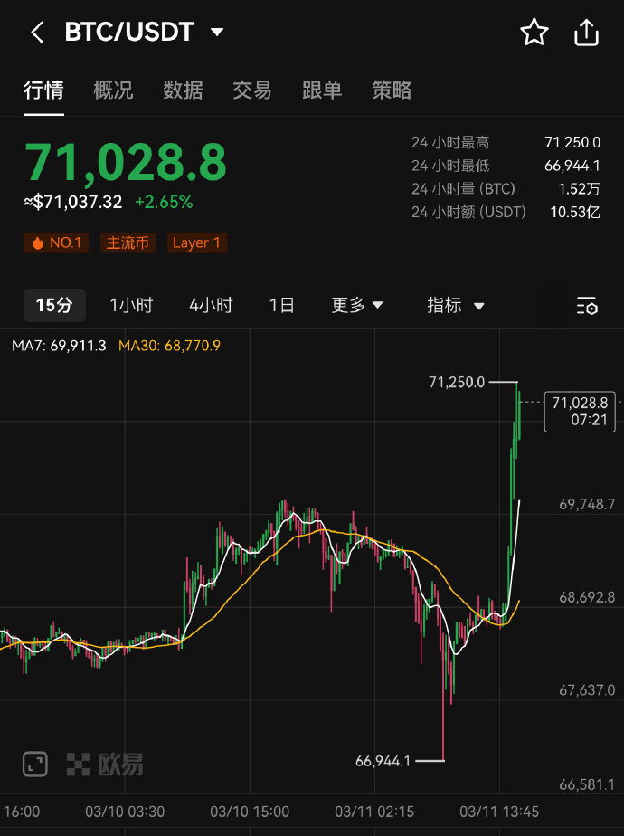 比特币超71000美元一枚,24小时内超10万人爆仓