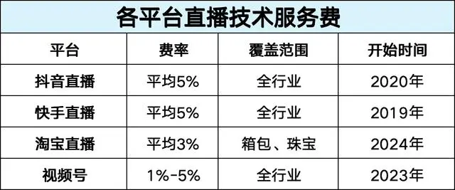 据悉,抖音电商从2020年起即开始收取平台服务费,绝大部分一级类目的费率都在5%左右。快手电商早在2019年7月20日起,就对所有在小店成交订单,不分行业,一律收取5%的技术服务费。视频号也自2023年1月1日起,按每笔订单对应商品或服务的类目收取1%-5%的技术服务费。(亿邦动力)