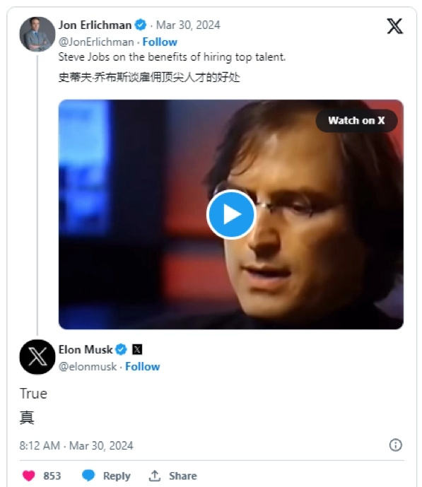 马斯克认同乔布斯的人才观:招募顶尖人才打造明星团队