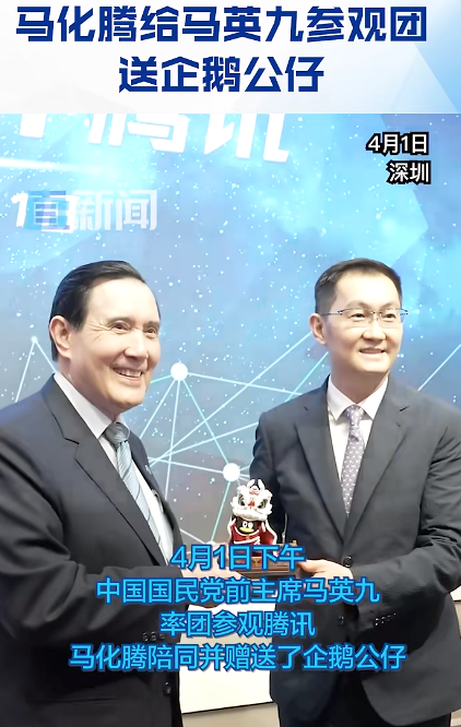据悉,马英九参观腾讯总部时,腾讯公司创始人、首席执行官马化腾全程陪同,马化腾还给马英九参观团赠送了企鹅公仔。(台湾日月谈)