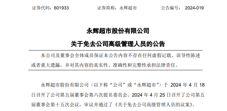 4.永辉超市两位副总裁被免,一位因身体原因,一位因能力不足