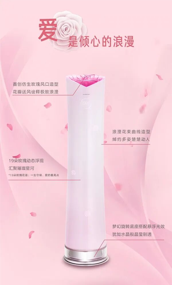 格力官网显示,目前玫瑰空调柜机限时特价29999元,该空调首创仿生玫瑰风口造型,19朵玫瑰动态浮现,底座支持旋转并自带悬浮光效。(快科技)