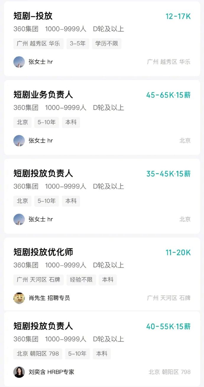360发布大量短剧岗位:招各种负责人,已布局小程序剧场
