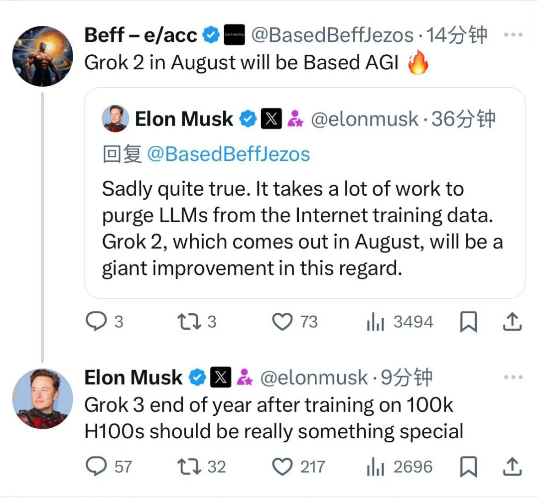 马斯克宣布xAI将在8月份推出Grok-2大模型,预计年底推出Grok-3