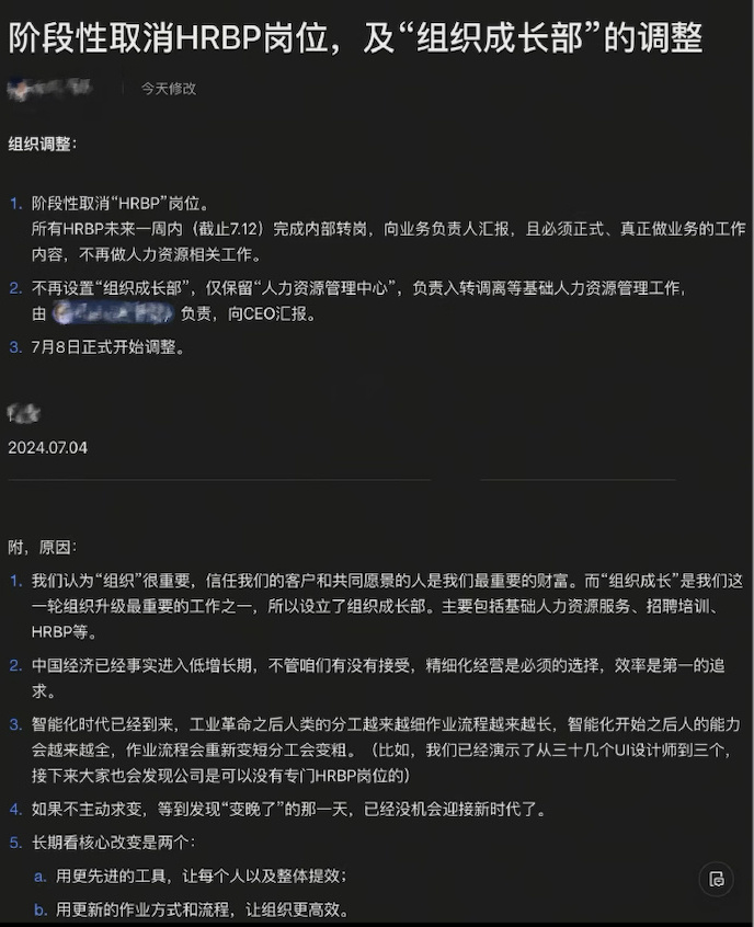 1.有赞被曝内部宣布阶段性取消HRBP岗位,7月8日正式开始调整