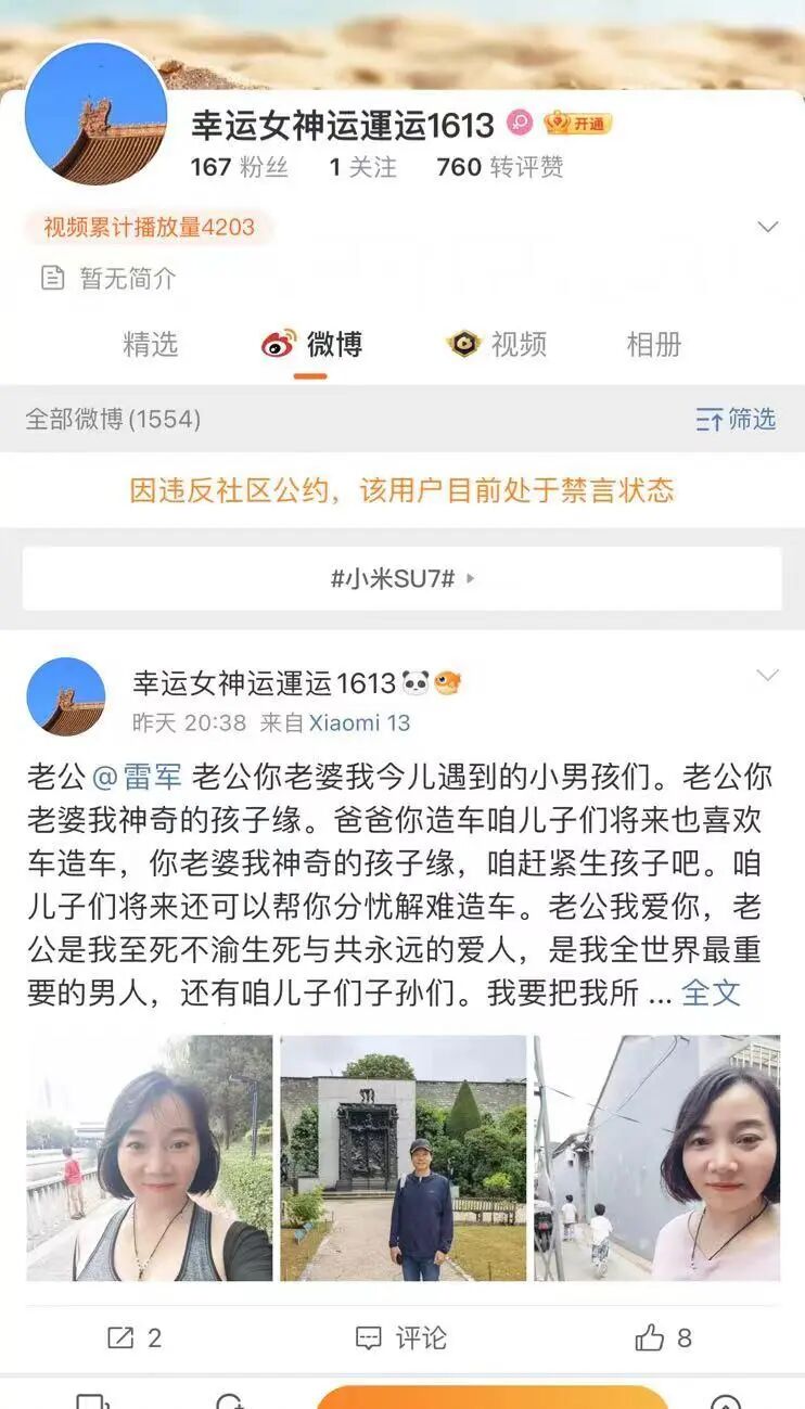 每天打卡喊雷军“老公”,女网友微博账号被禁言