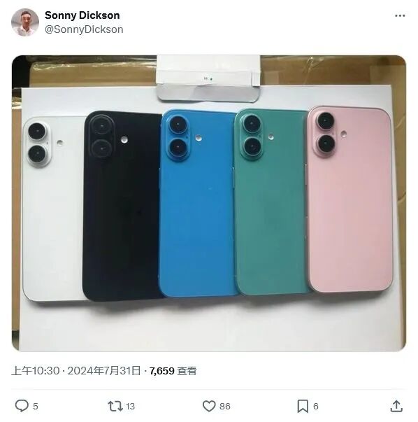 苹果iPhone 16机模曝光:或额外提供紫色和黄色版本