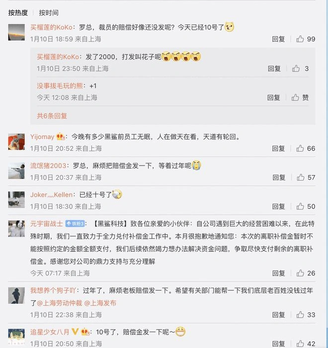 黑鲨被爆拖欠员工离职补偿金:CEO微博变大型讨赔偿金现场