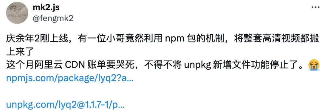 前段时间,有人用npm传播《庆余年》资源。