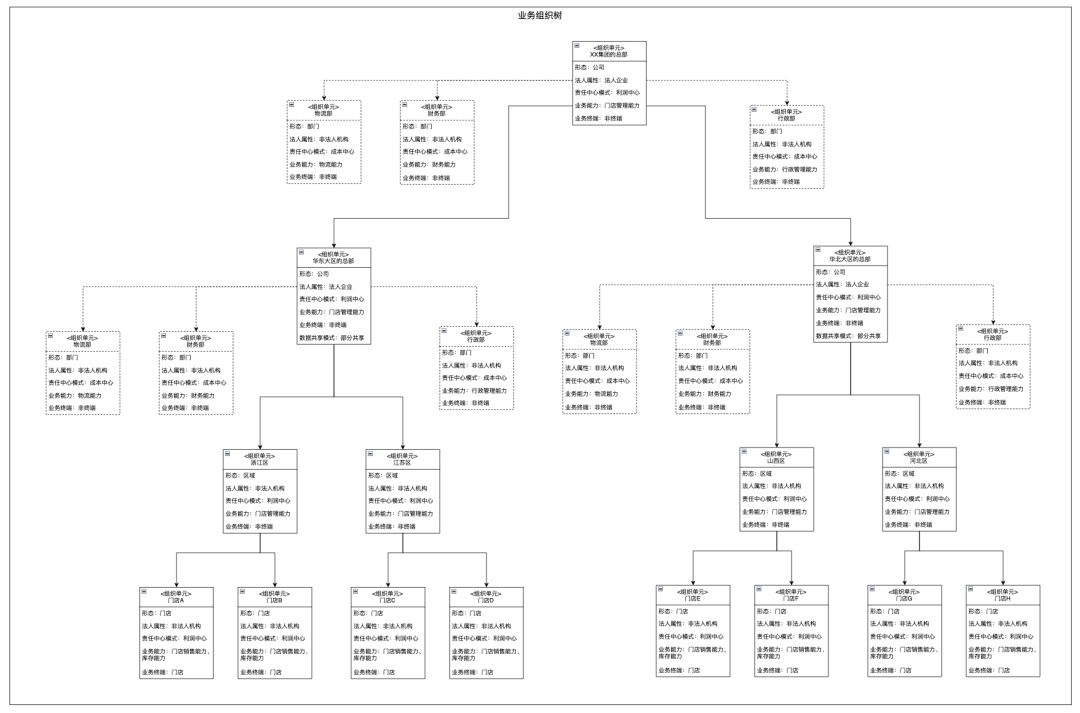 组织单元的法人属性:明确组织单元的法人属性,包含:法人企业(形态=集团、公司)、法人分支机构(形态=分公司、加盟商)、非法人机构(形态=事业部、部门、门店等)。