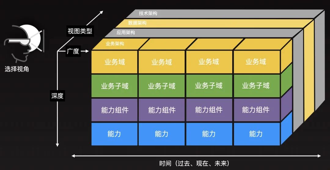 如果把视角比作一个坐标点,那它需要一套坐标系,坐标系通常有4个维度:广度、深度、视图类型、时间。