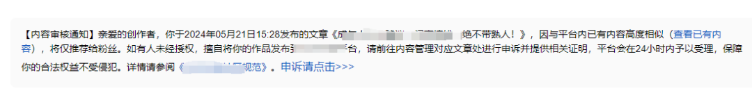 同步了几篇之后,立马收到平台发来了一个信息,我发布我公众号的内容,我倒成了“抄袭的那一方”了┭┮﹏┭┮。