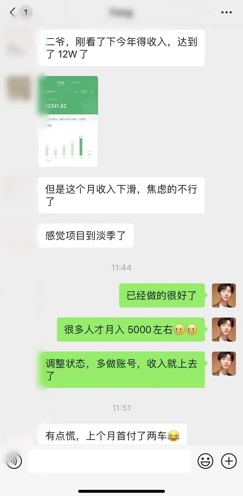 去年 12 月的时候,我带了一个小伙伴做电商项目,反馈来了,半年赚了 12W+,但是昨天突然找我说他很焦虑,原因居然是买了辆车。
