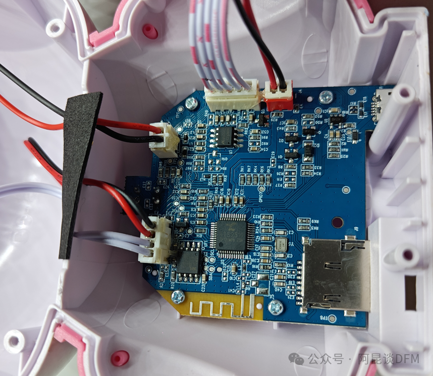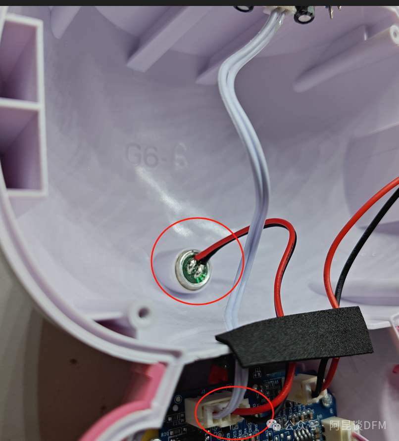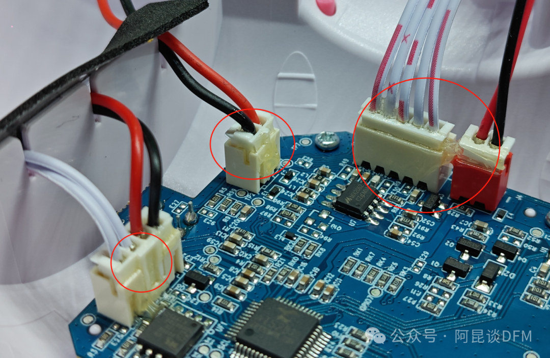 咪头位置,两条线接在了一个排线座上,用线也不一样,小细节还是说明挺讲究。