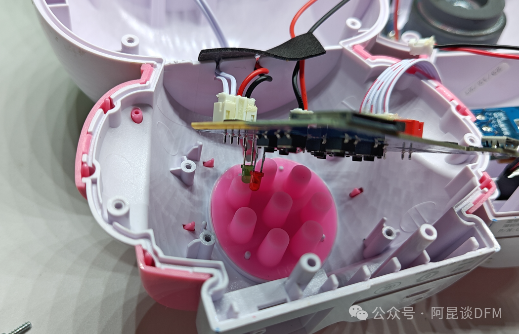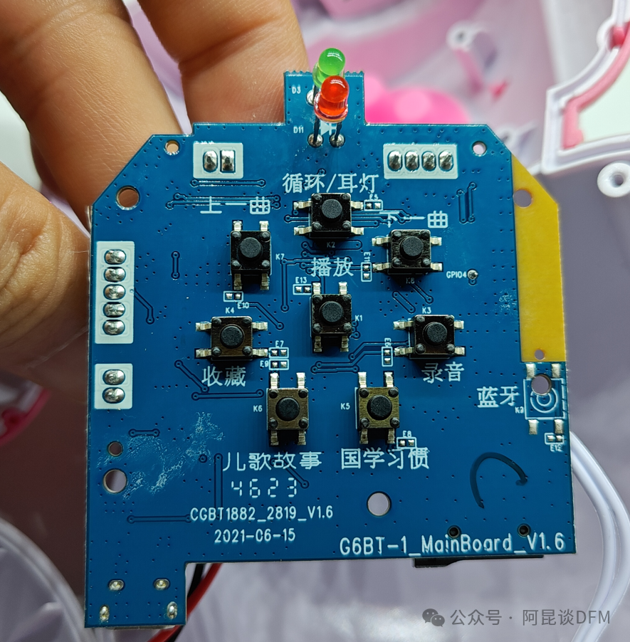 耳朵上的指示灯这2个灯脚也没有剪,应该是考虑到没有任何影响,就不去处理,一切从简。