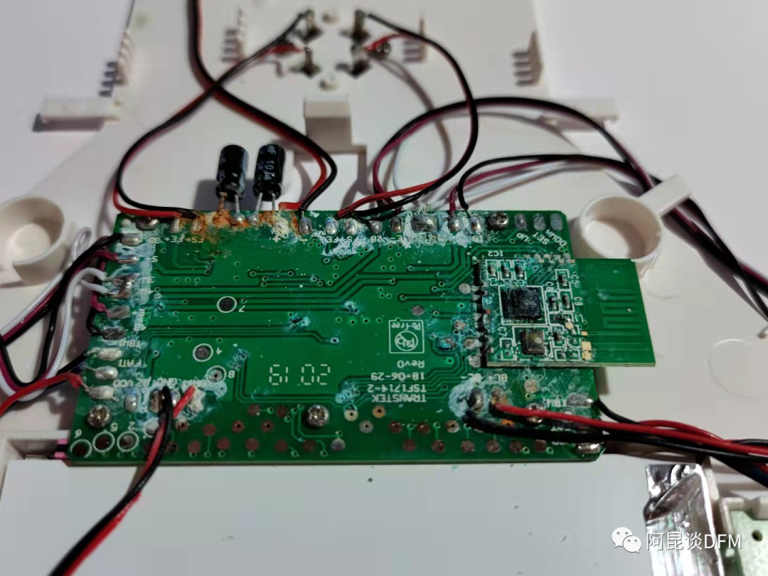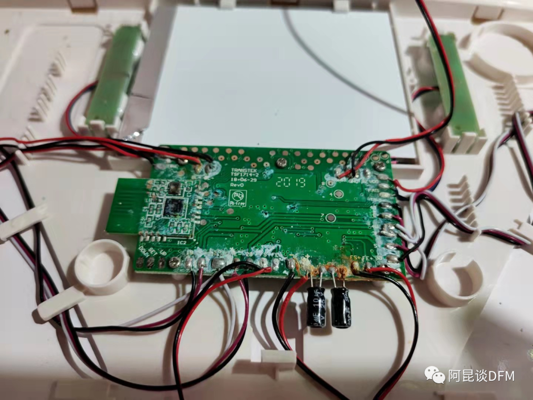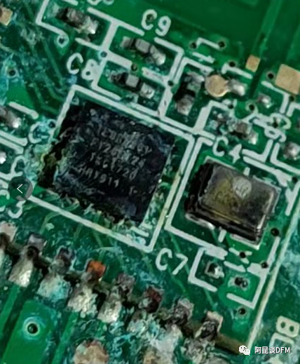 电容部分还有氧化,显示这个板没有做过三防处理,当然,三防处理要不要估取决于产品可靠性等级和产品密封性综合评估。