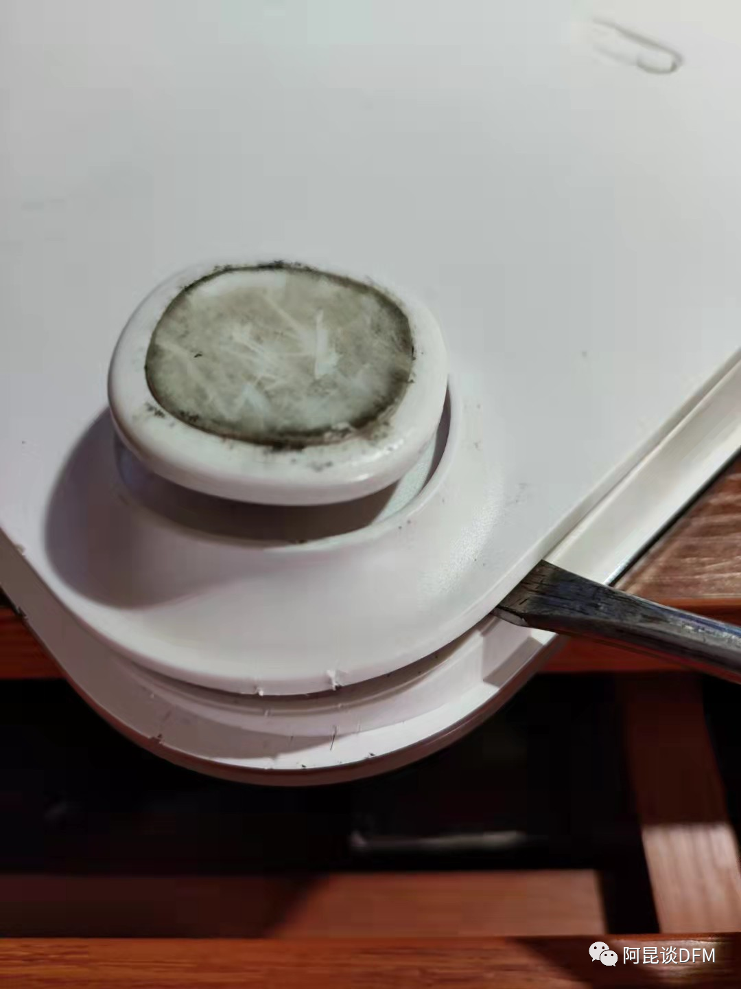 整个体脂称没有螺丝,一度不知道如何拆解,四脚处也不敢硬拆,后来才发现,直接撬开即可,卡扣形式。