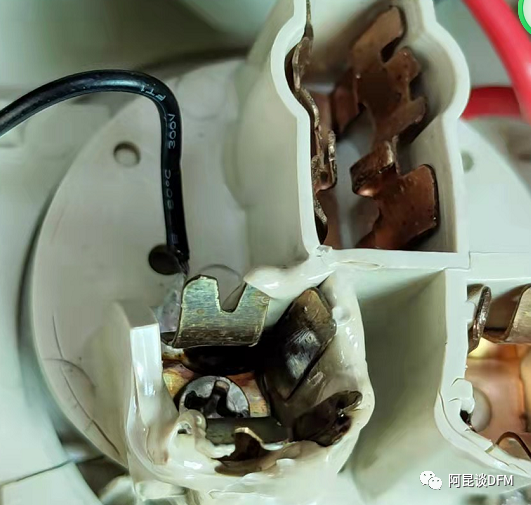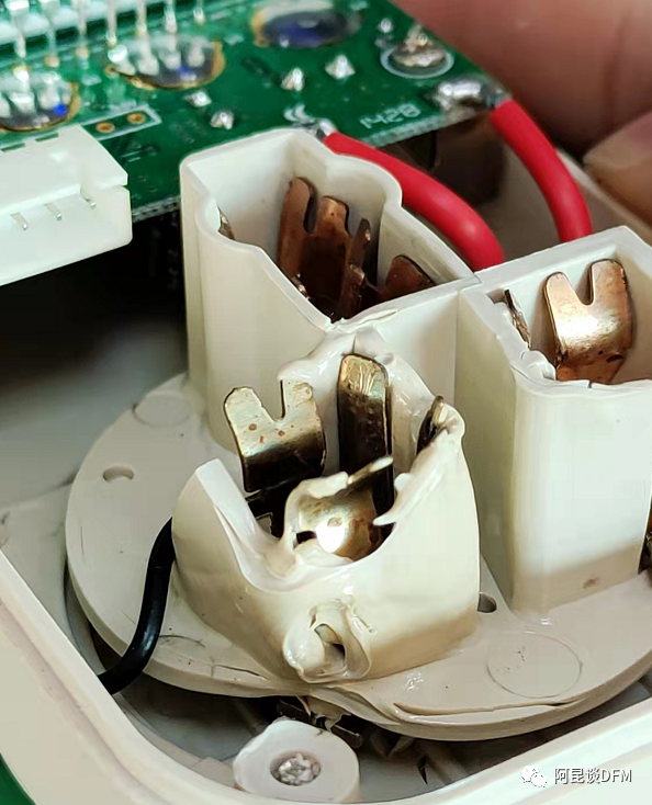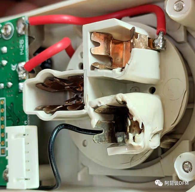 我的天,这个地方居然烧容了,分析是有大电流高温和打火导致。