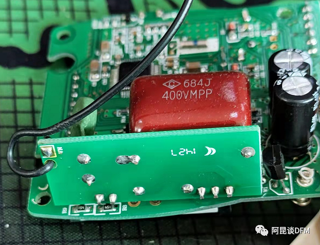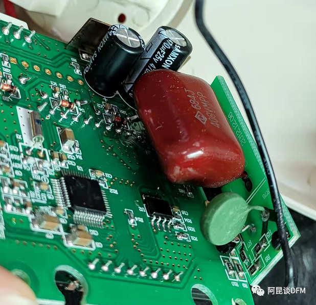 电路板其中将电源部分开来做,做成立体结构,这个设计也值得很多小型化的产品参考。