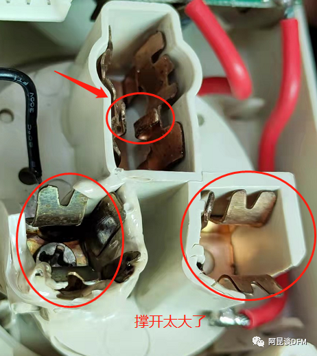 从图上可以看出,两个铜皮撑开太大了,难怪接触不良了。