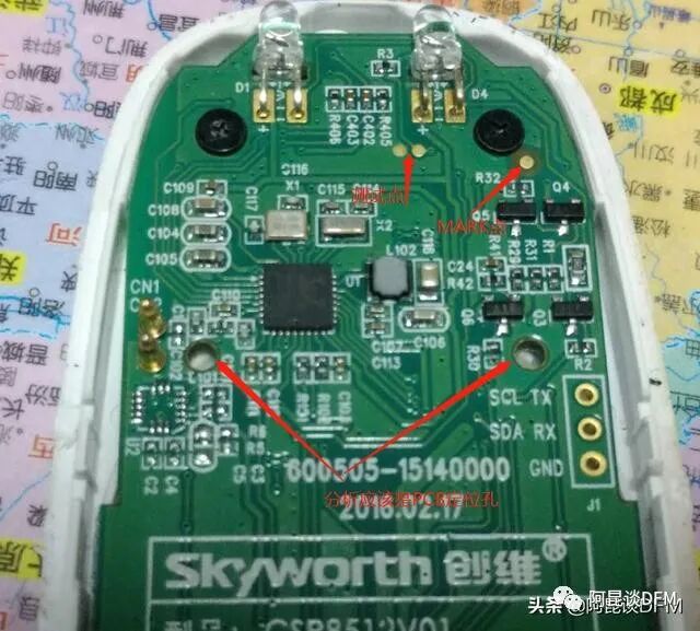 上面一排6个测试点在之前视频也专门说过,这是引出来的相关信号脚,是露在外壳,不用拆盖,就能触碰到这些测试点,他们的作用就是不用拆螺丝就能方便升级固件作用、故障排查(如有复位脚可重新复位),,这是优秀的设计思路。