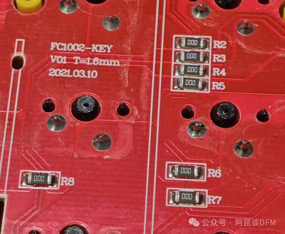 上面好多1206的欧电阻应该都是用来跨接走线用的。不过还是不太理解,不能打个孔吗,只能说这可能就是一个单面的焊接板,电阻用的红胶工艺(好像也没看到红胶)。