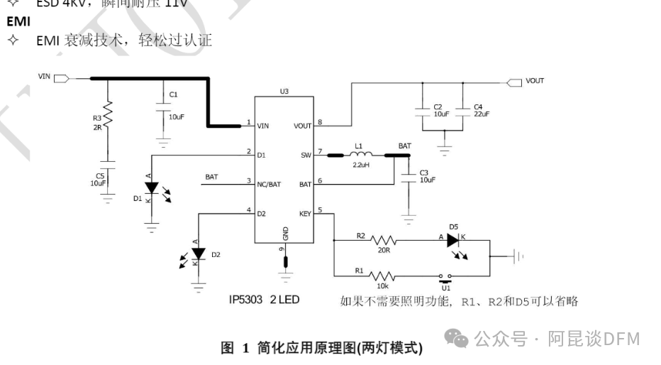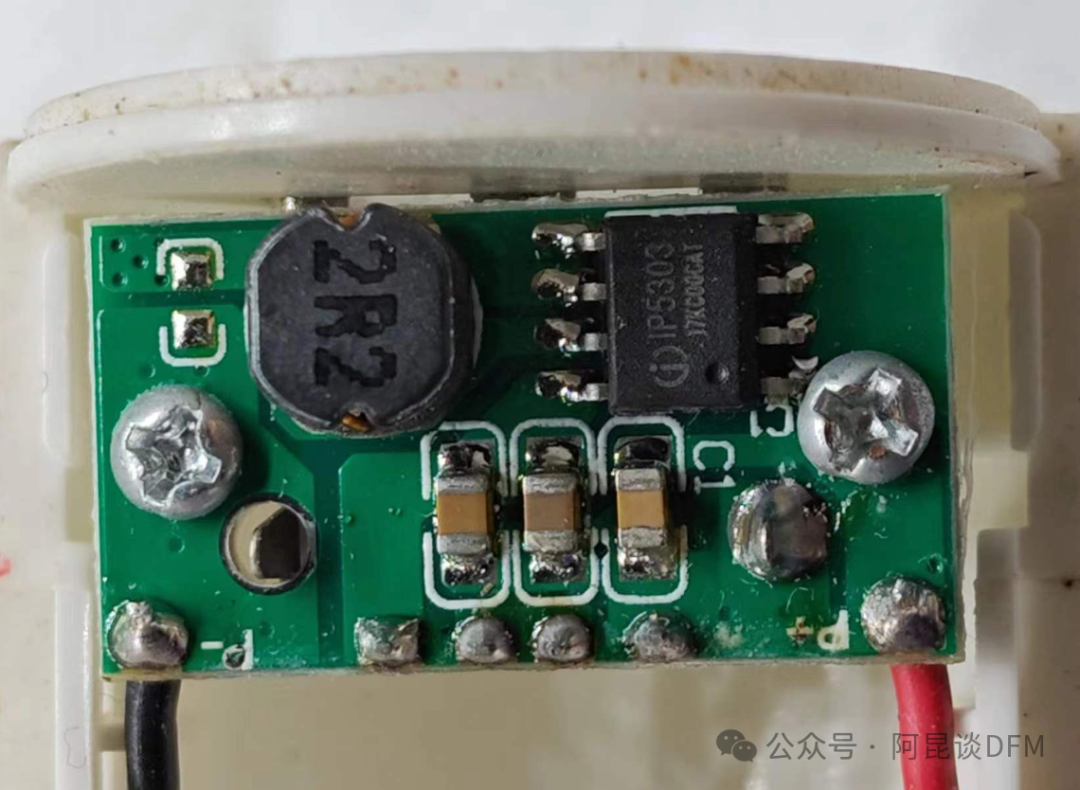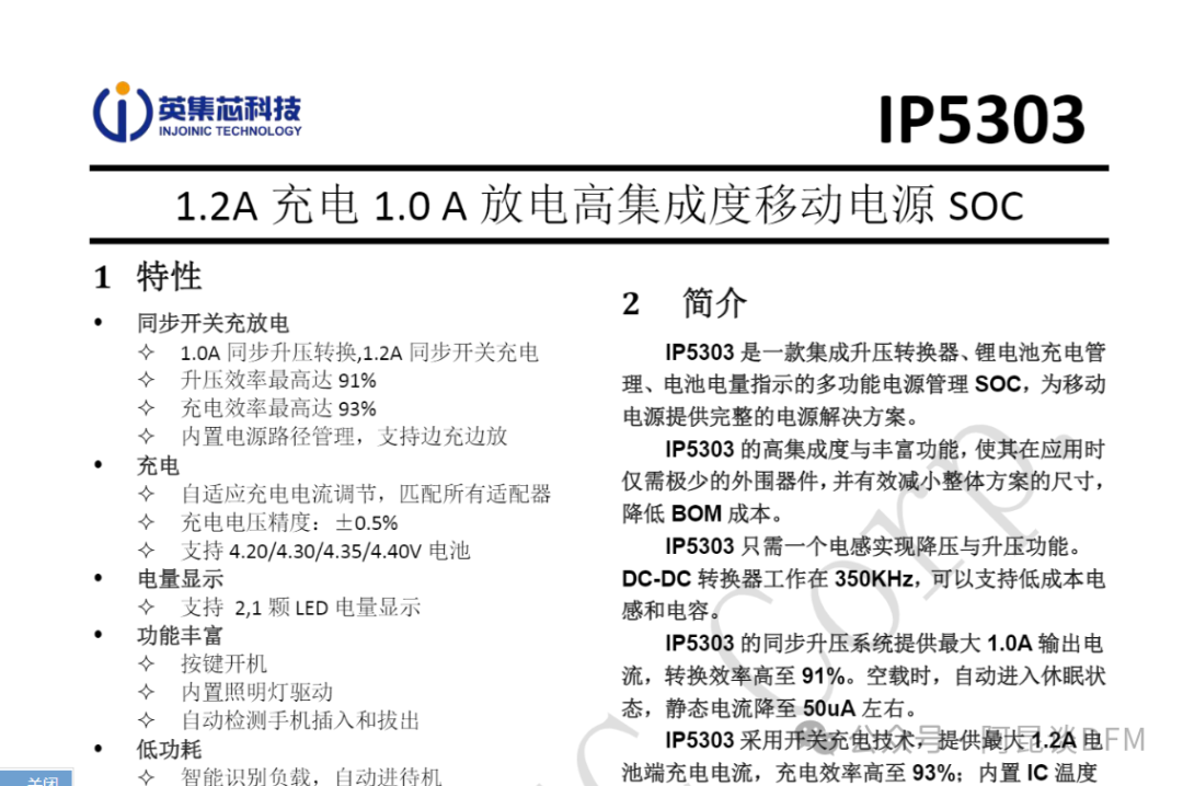 先看下尾部的小电路板。芯片为IP5303配合了功率电感和若干电容,。我们看下这个芯片是干啥的。