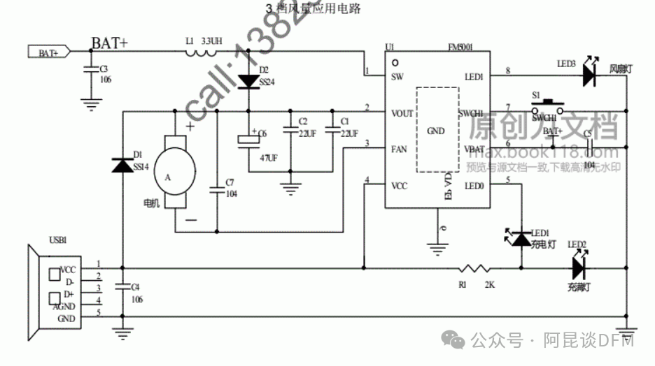 果然,这居然还是一个专用在小风扇的定制芯片,因为消费量大,所以专门有这一款芯片。这个芯片除了带三档控制,还支持充电功能