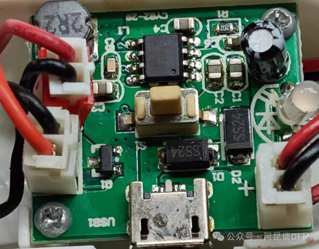 这类芯片一般支持了充电与升压功能,对电池充电的同时,可以将电池3.7V电压升到5V给外部数码设备使用。还有电量指示功能、手电筒功能(你会发一好多移动电源都有个手电筒功能)