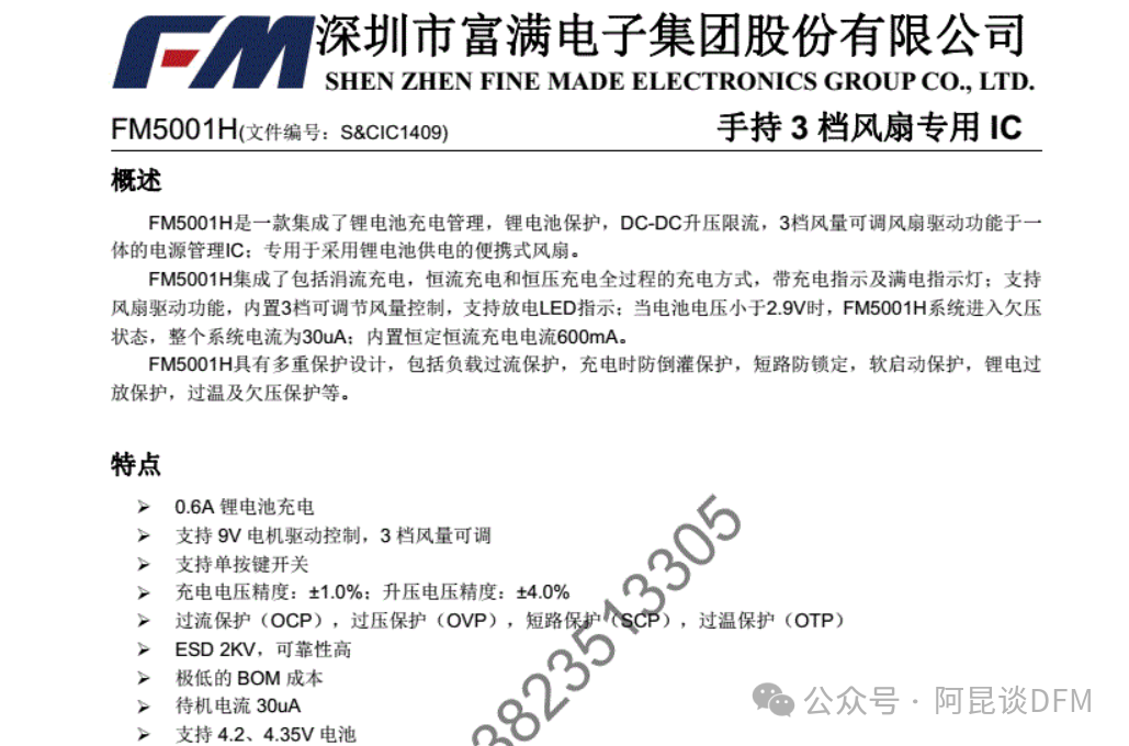 想必这个FM5001H就是一个控制芯片了。我们查一下