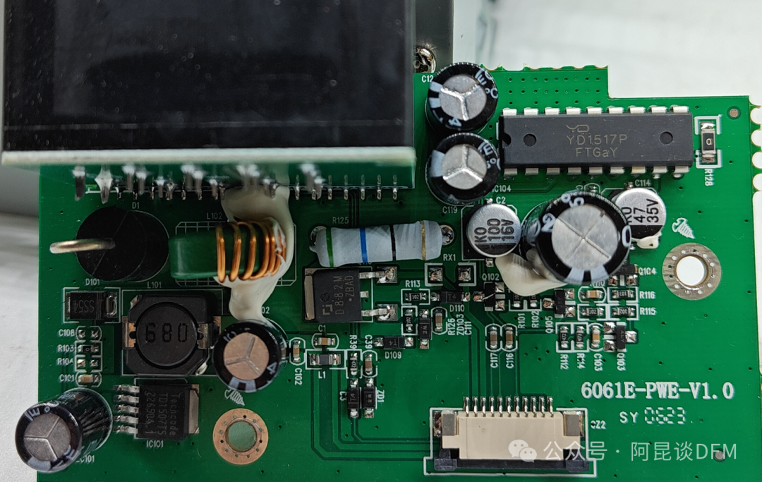 这个电路板是23年第6周生产,这个电路板通过文件名(PWR)及以上面的电感、芯片可以看的出这是一个电源板和功放板。6061E有可是这个设备的型号。