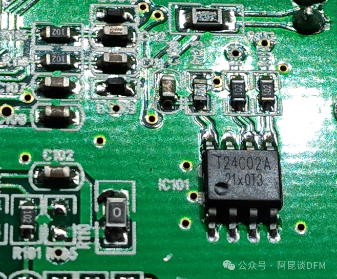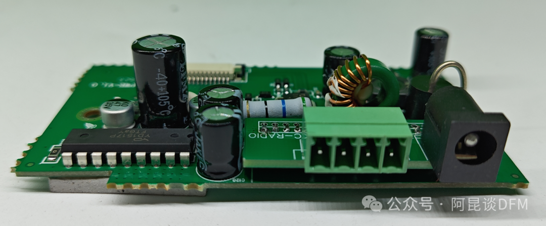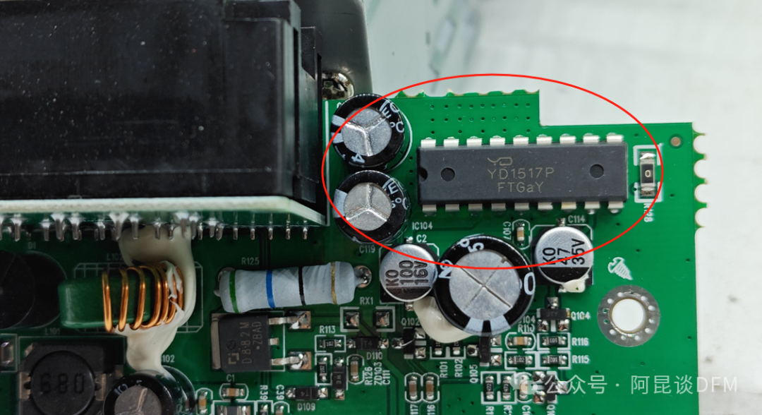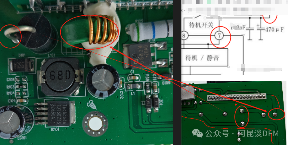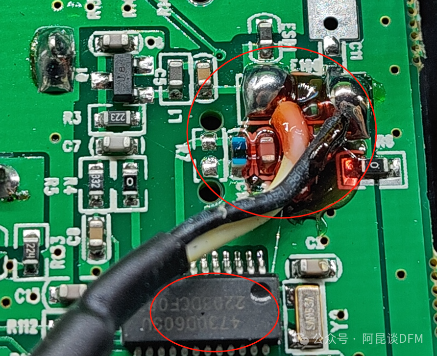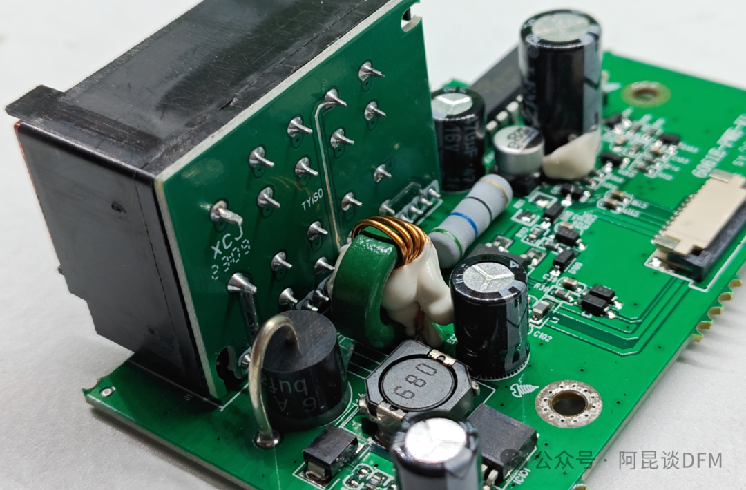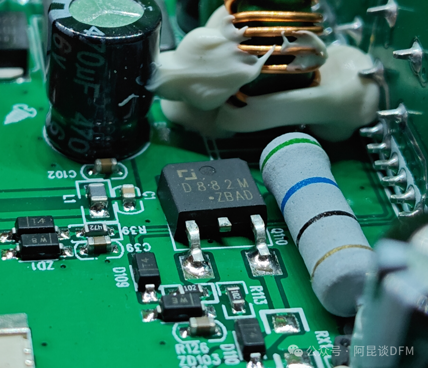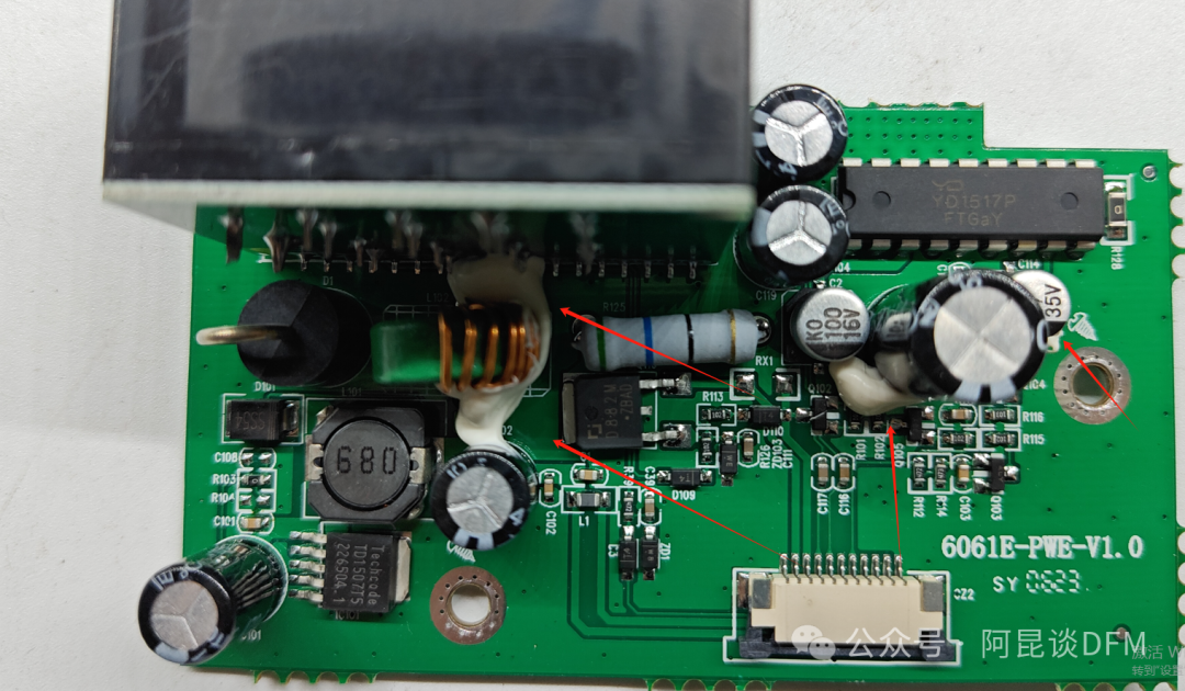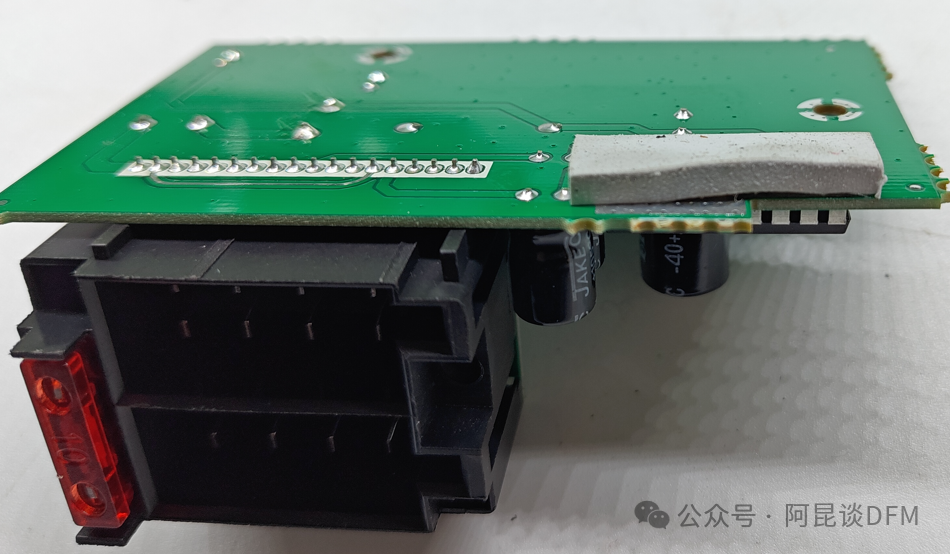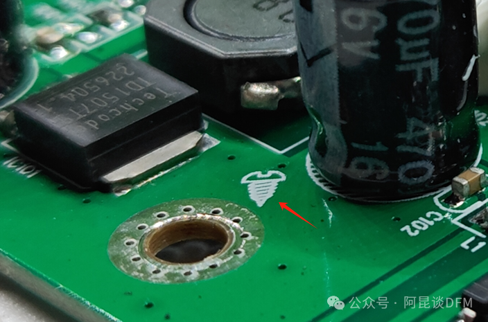 电容、电感部分打白胶进行固定,也再一次证明了汽车电子对可靠性的要求。螺丝孔边上的螺丝符号也是一个设计小细节