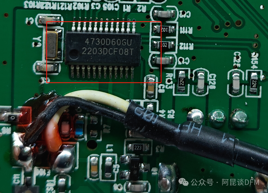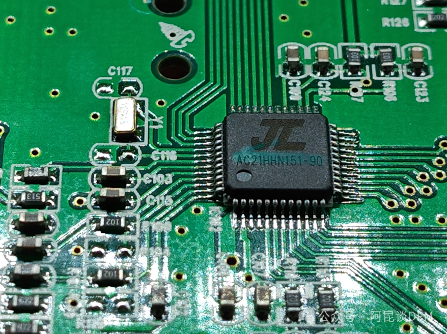 AC21HHN151-90芯片居然没有查到规格书,我分析大概是一个单片机芯片,上面还画了绿线,这是写过程序后的标记。单片机用来处理按键控制、收音机芯片IIC总线控制、液晶显示等功能。
